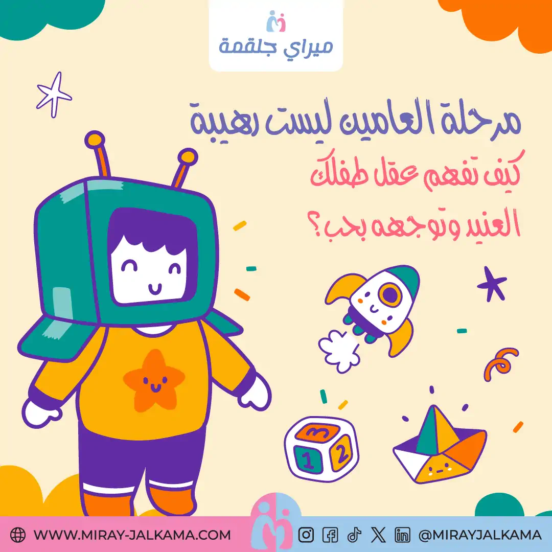مرحلة العامين هي في الحقيقة “مرحلة الاستقلال” أو “مرحلة تكوين الذات”. إنها علامة فارقة وصحية في تطور طفلك. من خلال فهم الأسباب التنموية وراء سلوكياته العنيدة، يمكنك تحويل تفاعلاتك من معارك إرادة إلى فرص للتعليم والتواصل. أنت لا تربي طفلاً “صعباً”، بل أنت ترشد إنساناً صغيراً شجاعاً يكتشف صوته ومكانه في العالم. استمتع بهذه المرحلة الصاخبة والرائعة!
